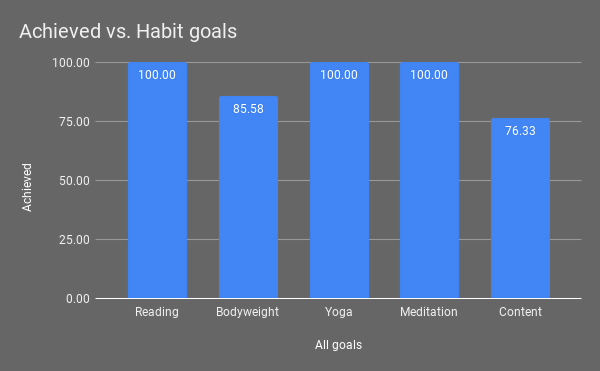 When it comes to habits that I already have, I hit 92.38% for my habits overall and even completed 3/5 goals in this category.