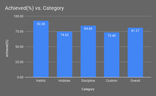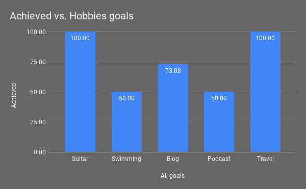 Overall I’m at 81.27% across all my goals, which is not great at all, compared to last year, where I hit 91.19% across all my goals.