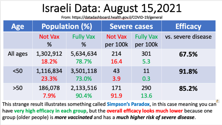 Israeli data: How can efficacy vs. severe disease be strong when 60% of hospitalized are vaccinated?